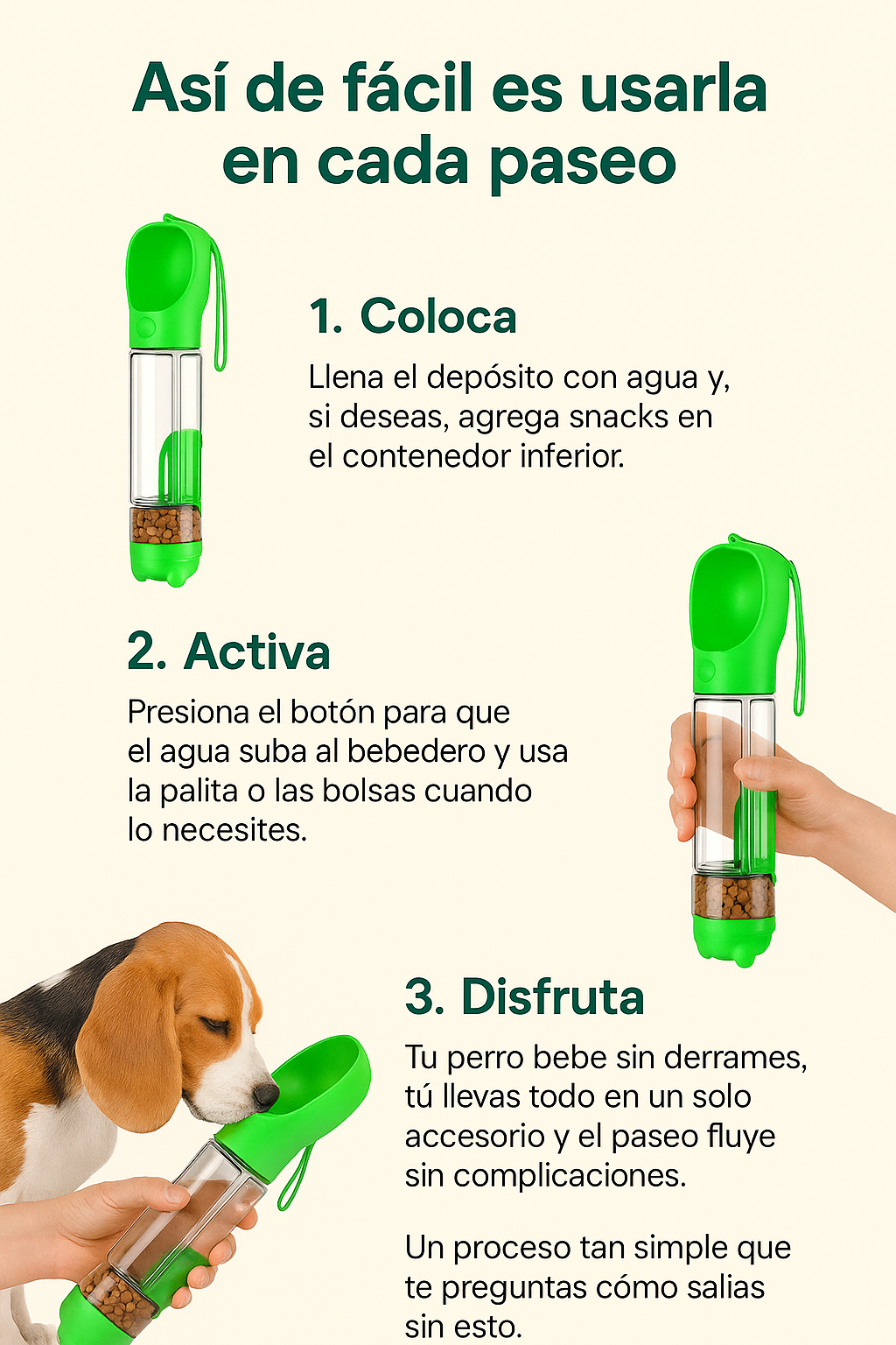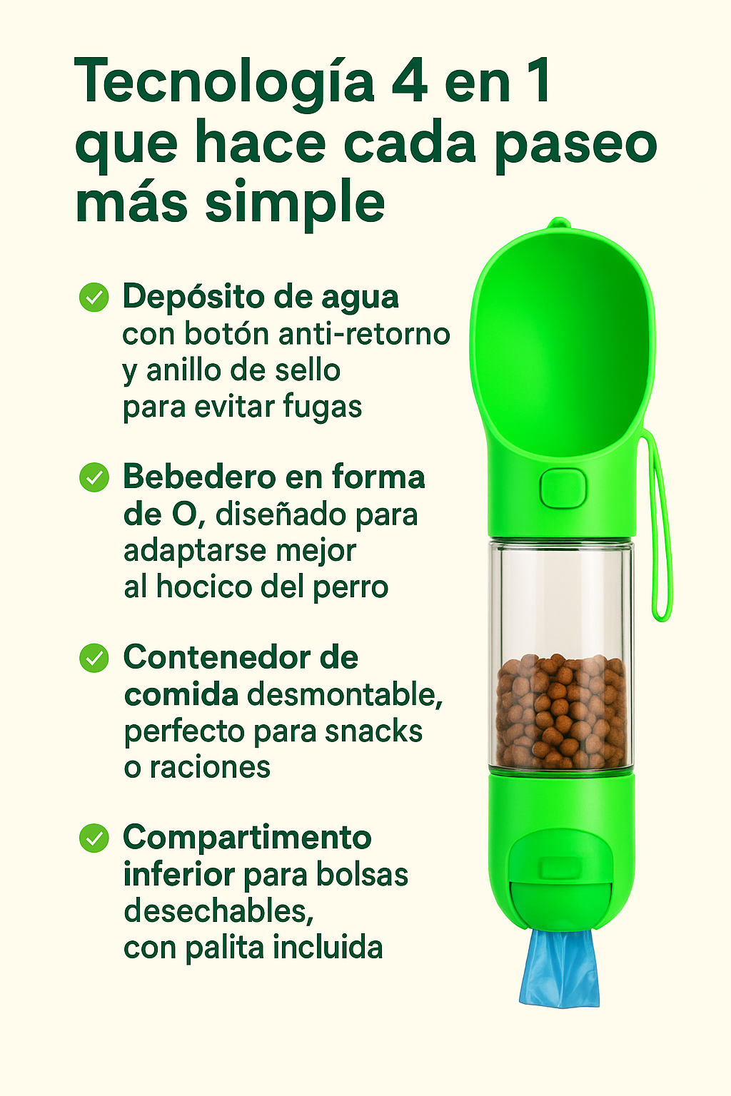⭐️⭐️⭐️⭐️⭐️ “Lo uso para mis perritas. la facilidad de tener 4 usos en 1 es un puntazo.”